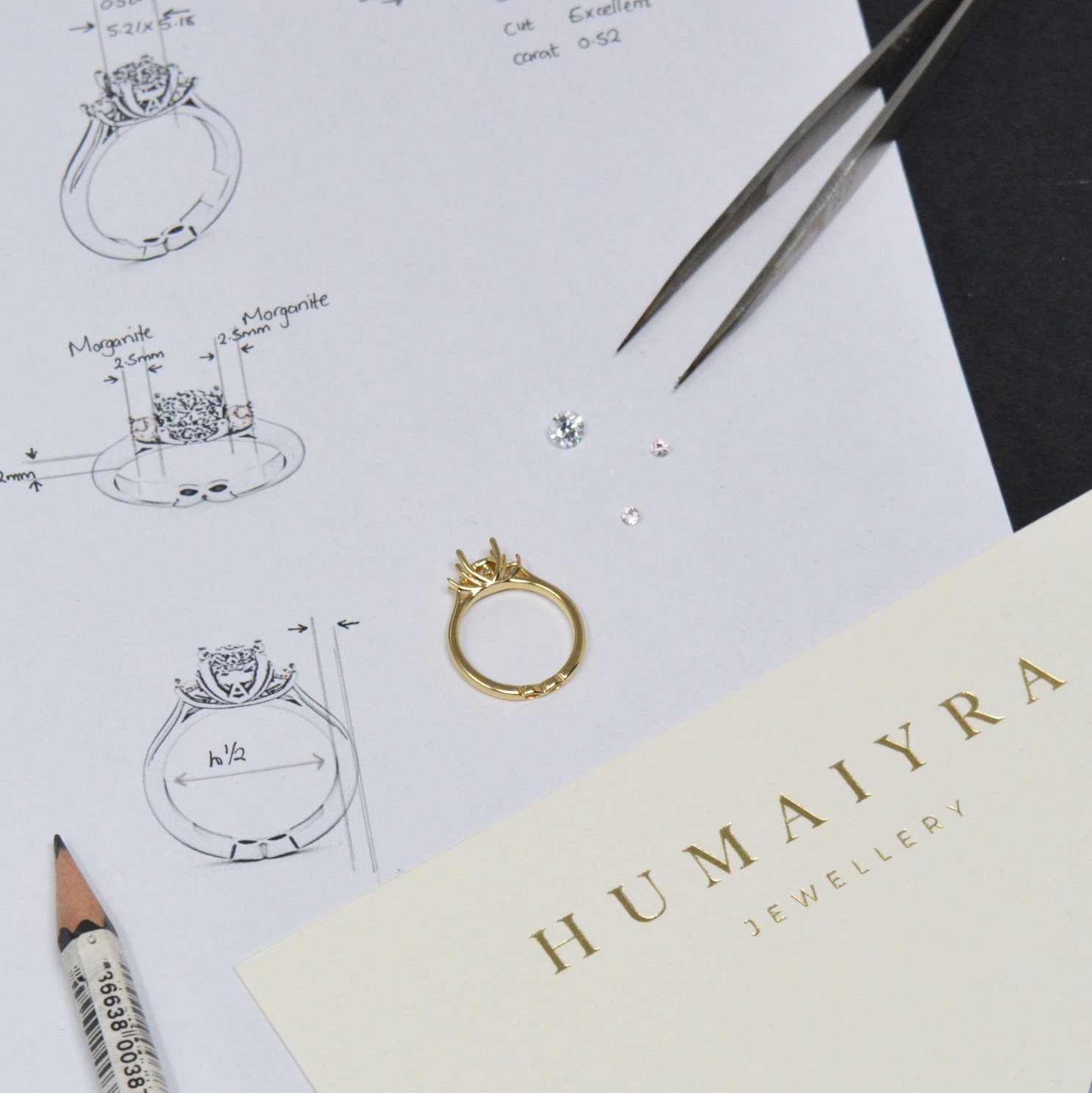 Creativity and innovation continue to be the soul of Humaiyra. Our unique creations are bought to life with high levels of precision, experience and creativity. With our one to one service we'll design your ring with you making sure every detail is perfect. Each ring is individually made by our highly skilled and experienced craftsmen and hand finished giving us all the right tools to create your dream.