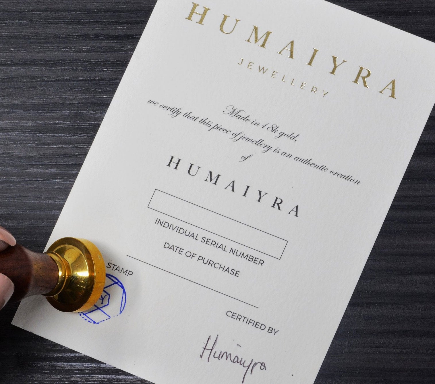 This step is vital in our process. Each piece is individually looked over to ensure it meets the standard of our brand. Each piece of jewellery from Humaiyra comes with the brand mark and certificate as an extra guarantee all the steps in the creation of a jewel have taken place.