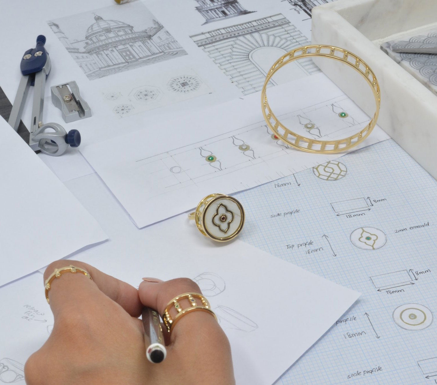 Driven by our passion for unique designs and excellent craftsmanship we’re here to turn your wildest dream into reality! Every step is created with you in mind. From the initial drawing stages all the way through to setting and polishing, we work with you to make your dream ring exceptional. We thought we’d take you through some of the steps below so you can truly experience our journey.